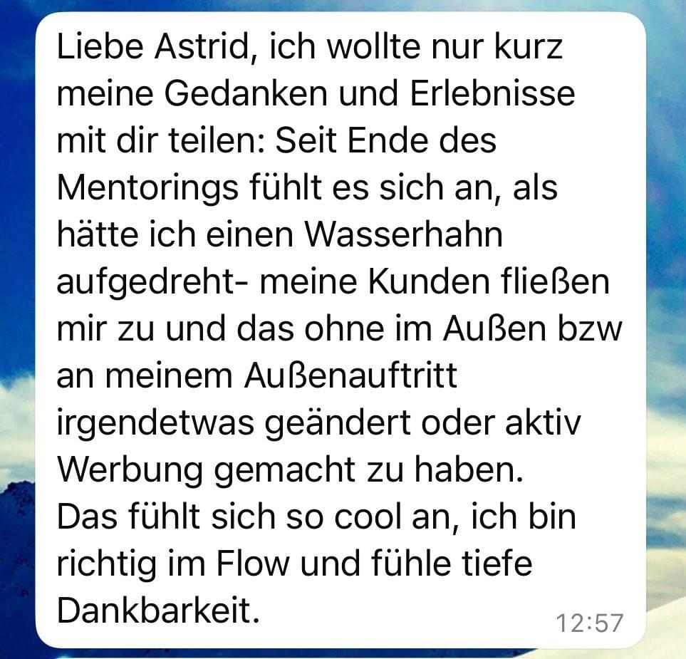 Wow, was für ein Transformationsprozess, den ich mit dir, liebe Astrid durchlaufen bin. Es war sehr intensiv, tiefgreifend und hat mich auf meinem Weg unbeschreiblich toll weitergebracht.
